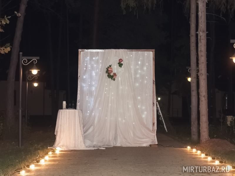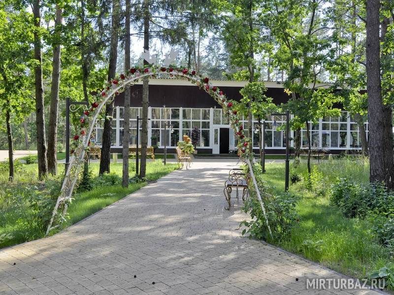 На территории «Зеленого бора» в Брянске можно реализовать невероятные идеи! Здесь есть всё необходимое для проведения выездной регистрации: прекрасная площадка, посадочные места, возможность подключить всю необходимую аппаратуру, красивейшая свадебная арка, которую вы сможете оформить согласно своим пожеланиям и предпочтениям.