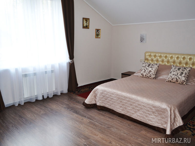 В коттеджах 2 спальни с двуспальными кроватями и гостиная с раскладывающимся двуспальным диваном, телевизором, спутниковым тв; оборудованная кухня (газовая плита, холодильник, микроволновая печь, электрический чайник, набор необходимой посуды); ванная комната: душевая кабина, биде, комплект полотенец, банные халаты, постельное белье на всех гостей, зимняя веранда с большим обеденным столом и стульями.