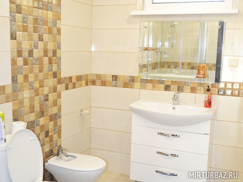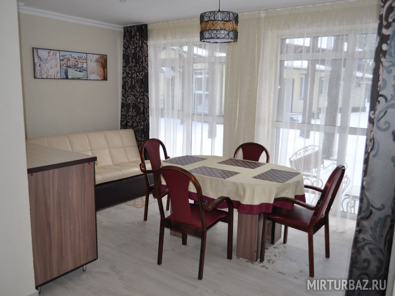 Здесь есть все для полноценного отдыха за городом: две спальни с двуспальными кроватями, просторная гостиная, полностью оборудованная кухня (газовая плита, холодильник, СВЧ-печь, электрочайник, набор посуды), столовая с большим обеденным столом, санузел (душевая кабина, биде), LCD-телевизор, установлена сплит-система, спутниковое телевидение, комплект полотенец и комплект постельного белья для всех гостей дома. В коттедже индивидуальное отопление, теплые полы.