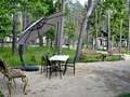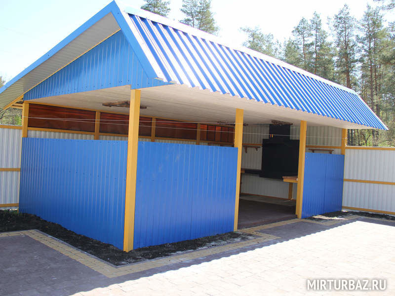 В «летнем домике», для удобства отдыхающих, есть свет и розетки. Беседка оборудована всем необходимым для пикника: мангал, шампура, посуда.