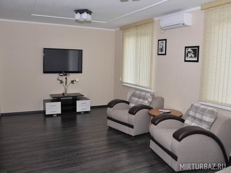 Укомплектован удобными кроватями, индивидуальными комплектами постельного белья и полотенец, в номере есть санузел и душевая кабина. Есть телевизор и спутниковое телевидение.