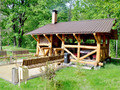 Это самые настоящие «летние домики» из оцилиндрованного сруба. Тут получаются красивые фотографии и здесь просто приятно отдыхать душой, они без труда и с комфортом разместят до 15 человек.