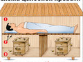 Когда человек ложится на лежанку, его с пчёлами разделяет тонкая ткань и настил с отверстиями для циркуляции воздуха из улья в домик. Пчёлы во время своей активности передают микровибрации, благотворно влияющие на человека, настраивающие органы на гармоничную и слаженную работу.