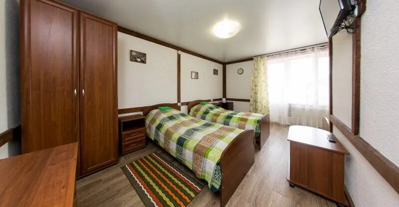 Шесть трехместных номеров на 1-ом этаже. Каждый номер имеет свой вход с улицы, оборудован всем необходимым для комфортного размещения 3-х человек: