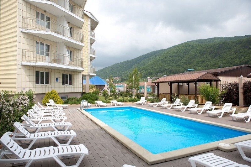 Путешествие с паройСемейный отдыхОстановились с мужем на 5 ночей, у нас входило 3-разовое питание в кафе при пансионате, всегда разнообразное и очень вкусное, к 7 вечера приходил музыкант и играл вроде на саксофоне, очень классно. Центральный пляж рядом, продуктовые и магазинчики с сувенирами. На территории отеля бассейн, мангальная зона и детская площадка. Номера чистые, приходили еще убрать👍 Персонал вежливый. Мы остались довольны. Для семейных пар с детьми много развлечений, но для себя мы ничего не нашли, сходить именно в посёлке некуда, было немного скучновато в самом Небуге.