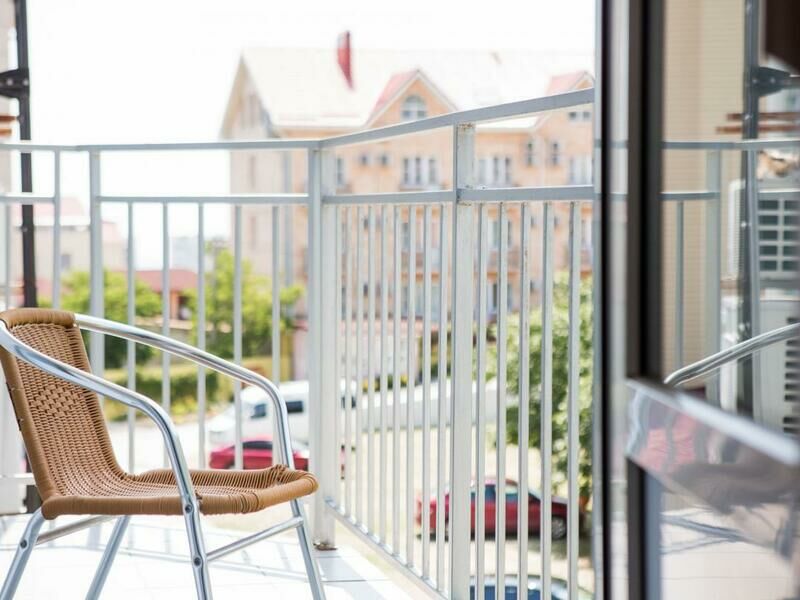 июль 2021 г.Оличный отель в хорошем местеТихий спокойный отель. Расположение идеально. На территории бассейн (правда, небольшой), детская площадка, теннисный стол, поле для мини-футбола. Есть своя большая парковка. Балкон, кондиционер, душ, туалет, фен, чайник. Мыло, шампунь докладывают каждый день. Уборка номера ежедневно. Если хотите тишины, лучше бронировать номер, не выходящий окнами на спортивную и детскую площадки. Вечером шумно, но примерно в десять вечера все стихает.