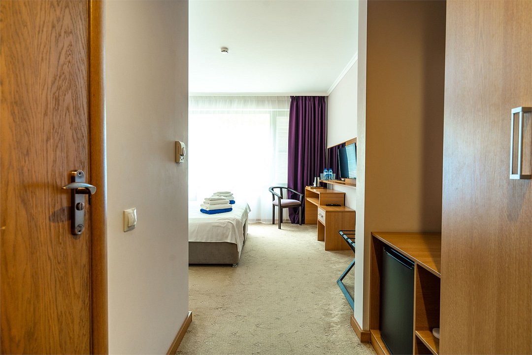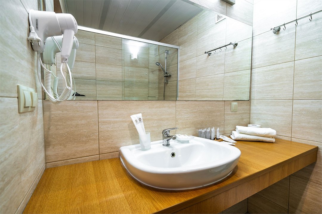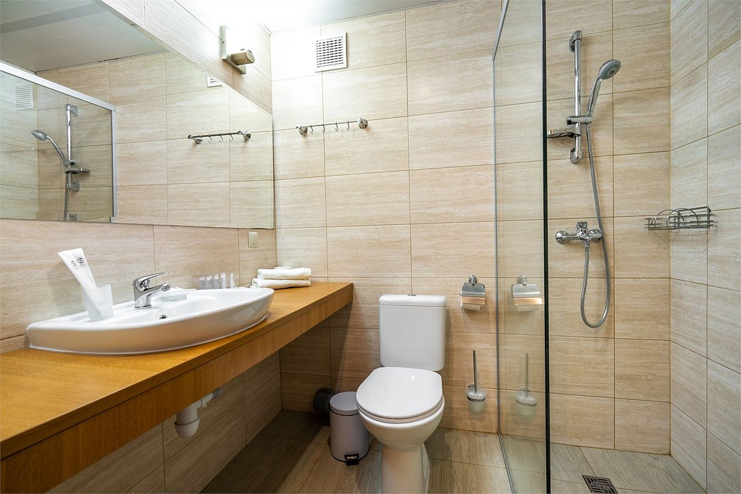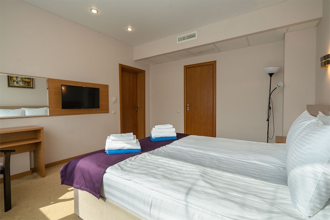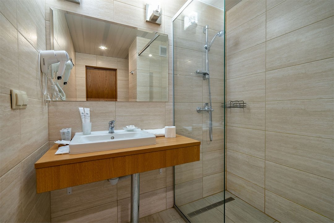 Светлый номер с одной общей или двумя раздельными кроватями. В номере есть телевизор, мини - холодильник. В санузле имеется душ, фен, набор полотенец. Номер без балкона.Услуги и удобства