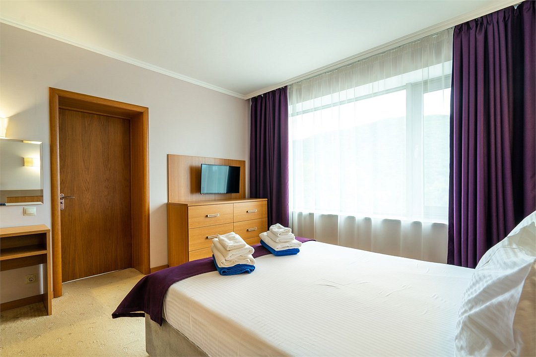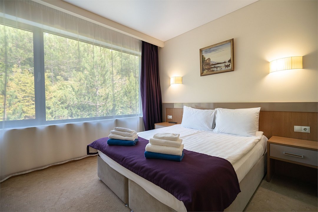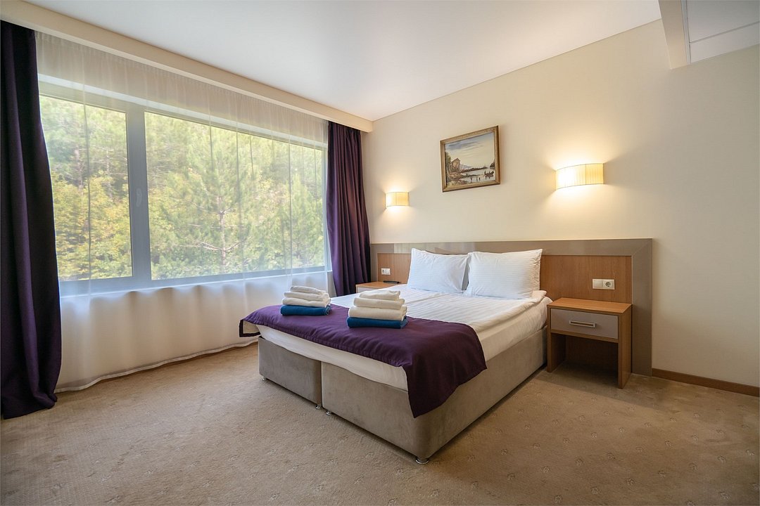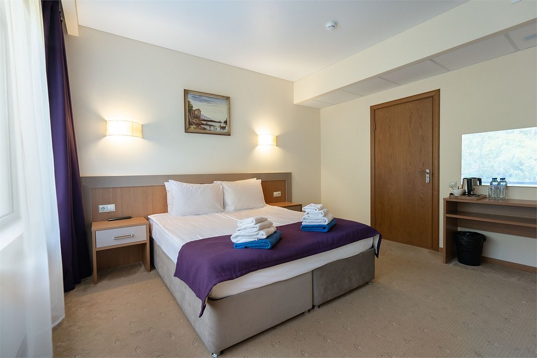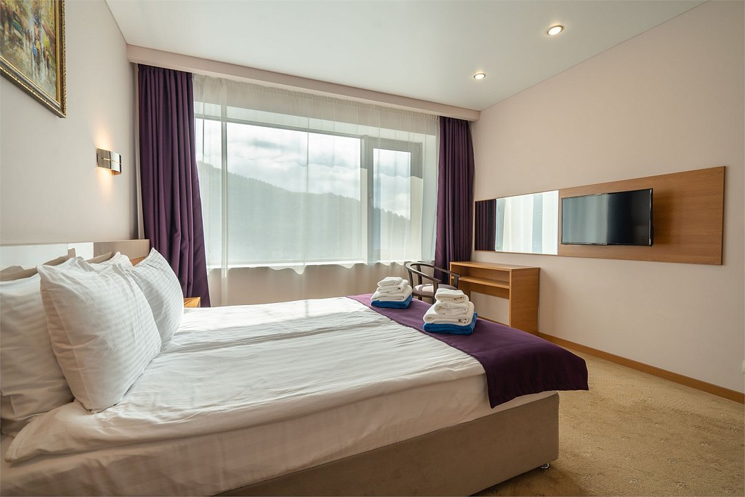 телевизор, кабельное телевидение, Wi-Fi, фен, электронные замки, ванная комната, тапочки, балкон, две односпальные или большая двуспальная кровать, диван, шкаф для одежды, зеркало, чайный набор, обслуживание номеров, сейф, чайник, унитаз, раковина, ковровое покрытие, душ, стаканы, туалетный столик, стул, туалетный столик, мини-холодильник, вид на горы, номер для некурящих, уборка номера, услуги прачечной (платно), СПА, мылоВ номере