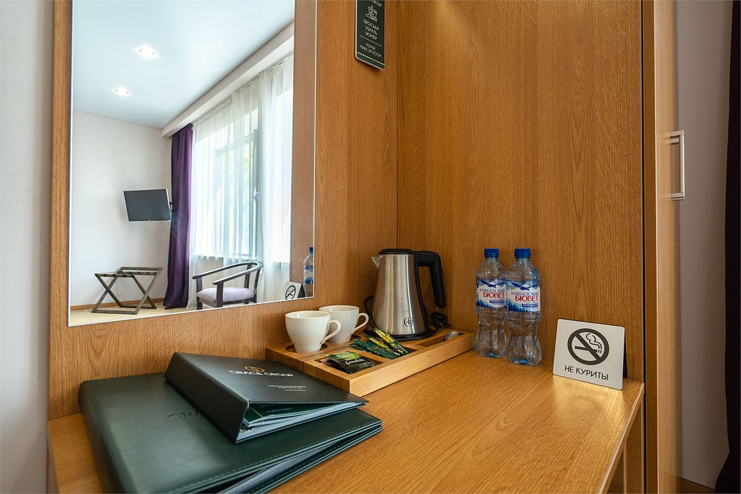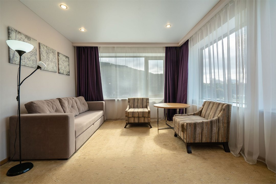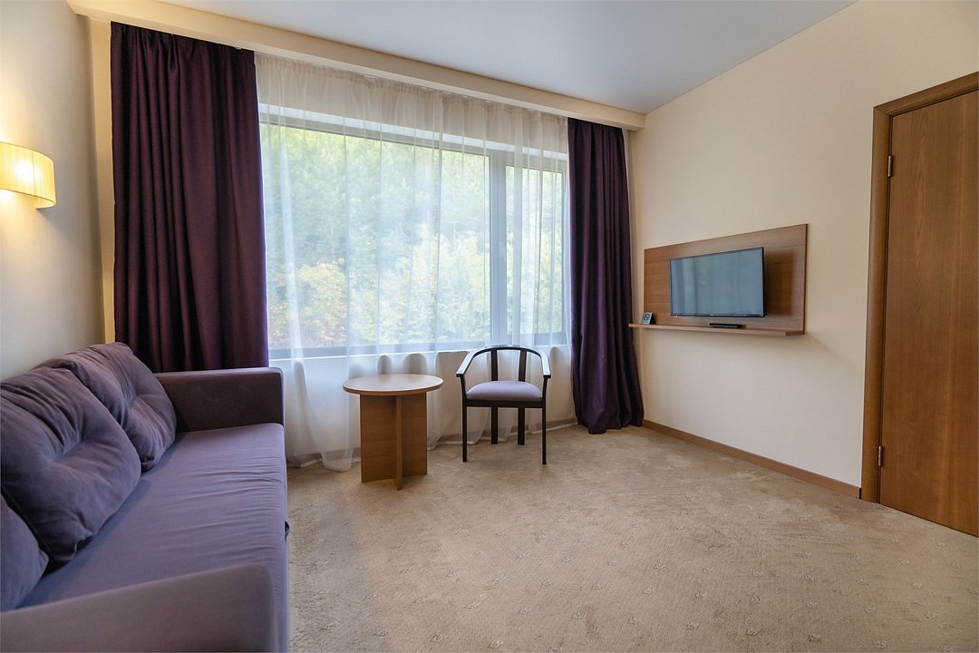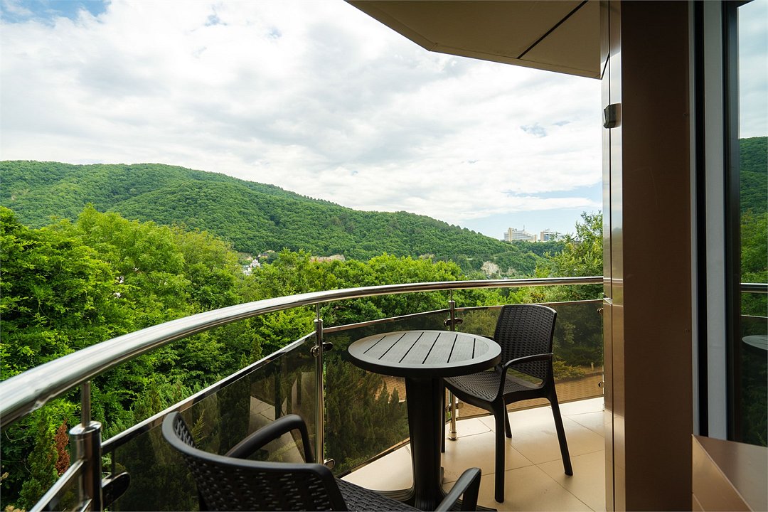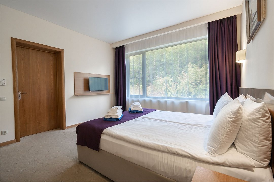 телевизор, кабельное телевидение, Wi-Fi, фен, электронные замки, ванная комната, тапочки, балкон, две односпальные или большая двуспальная кровать, диван, шкаф для одежды, зеркало, чайный набор, обслуживание номеров, сейф, чайник, унитаз, раковина, ковровое покрытие, душ, стаканы, туалетный столик, стул, туалетный столик, мини-холодильник, вид на горы, номер для некурящих, уборка номера, услуги прачечной (платно), СПА, мылоВ номере