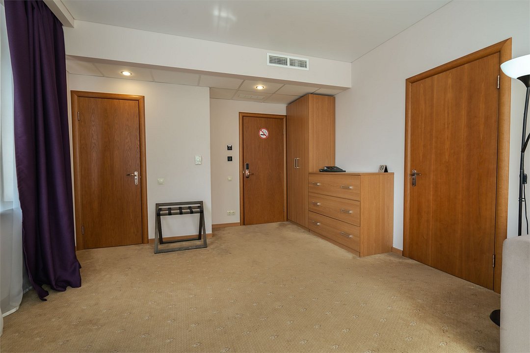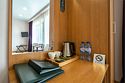Просторный и стильный номер Люкс для уютного и полноценного отдыха. В номере предусмотрено: • Карточная система замков • Кровать • Стул • Прикроватные тумбочки с лампами • Туалетный столик • Зеркало • Шкаф для одежды • Ковровое покрытие на полу • Мини-холодильник • TV • Wi-Fi • Система вентиляции • Сейф • Халат и тапочки • Чайный набор с чайником • Необходимый комплект посуды • Душевая кабина • Фен • Туалетные принадлежностиУслуги и удобства