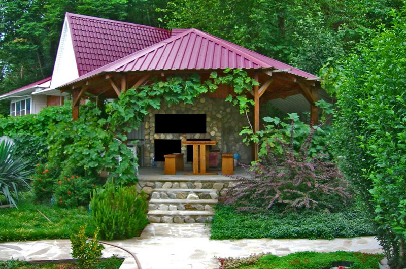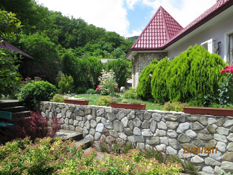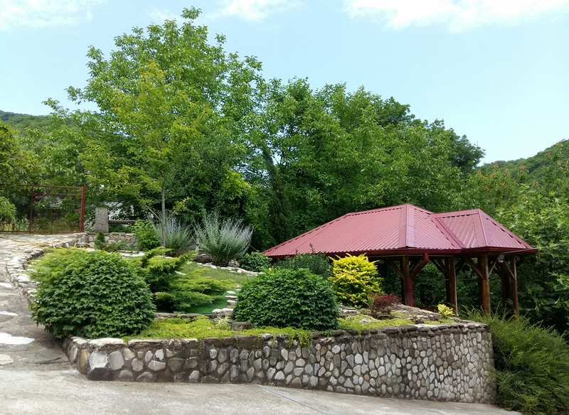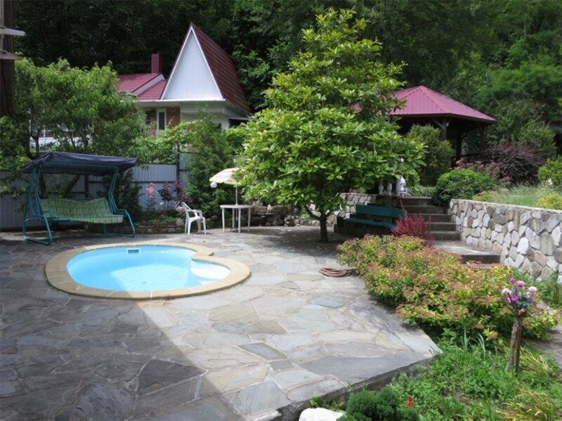На территории есть бассейн с системой очистки воды, для отдыха предусмотрены шезлонги. Озеленение выполнено высоквалифицированными дизайнерами. При оформлении ландшафта были высажены редкие и очень красивые растения, цветущие весь летний период. Водопад с падающей водой создаёт неповторимое ощущение уединённого уголка живописной природы. Беседки оборудованы мангалами.