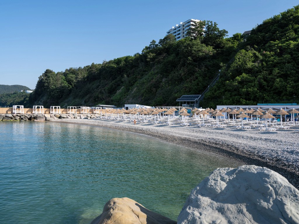 - С бассейном и собственным пляжем