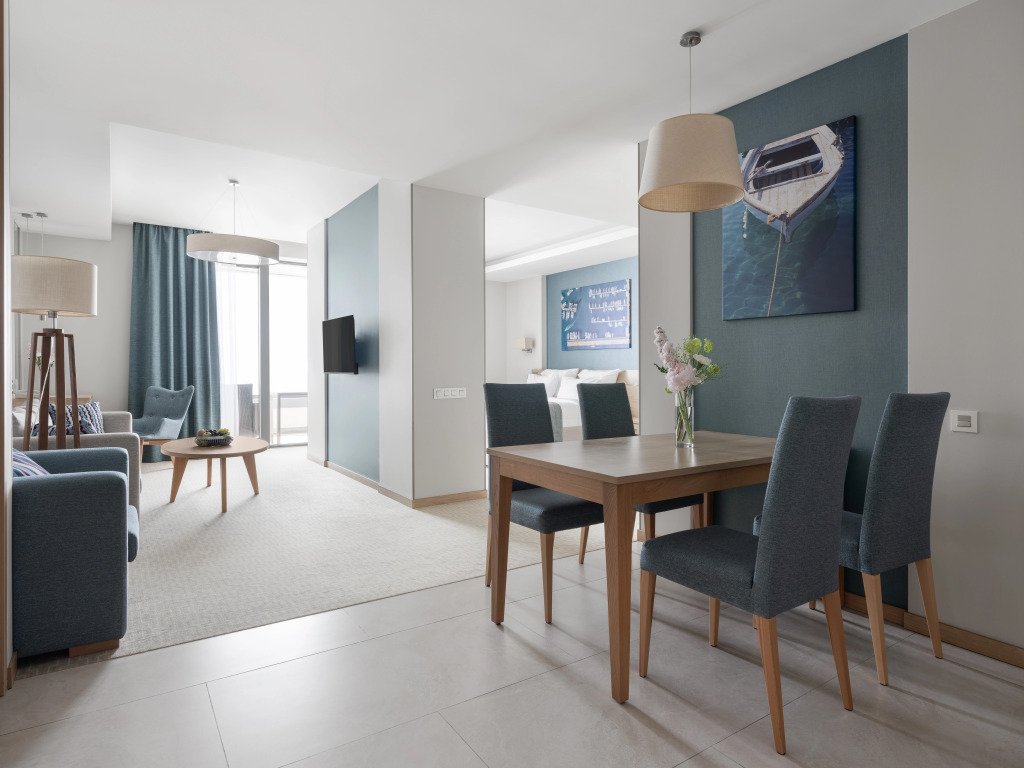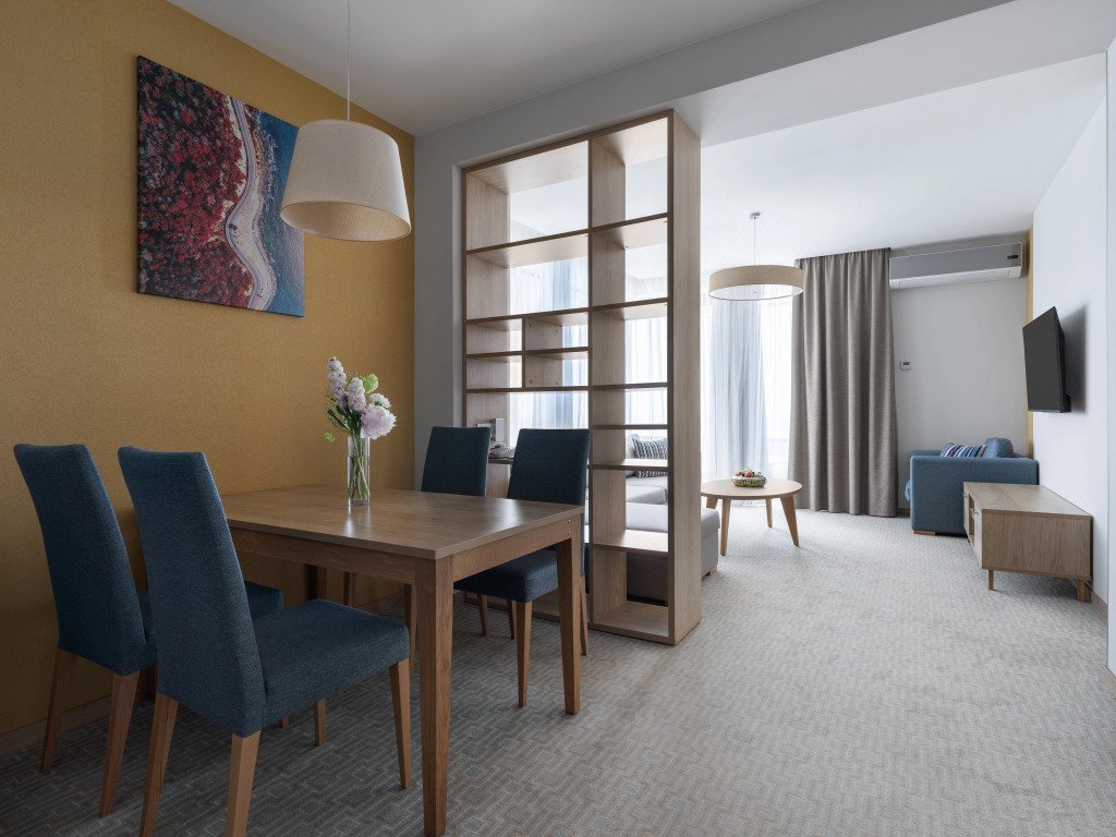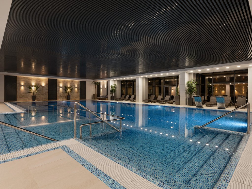 Здесь будем баловать себя водными процедурами: есть бассейн, крытый бассейн и открытый бассейн. Можно организовать деловую встречу, переговоры и даже собеседование. Для этого предусмотрен бизнес-центр. В отеле есть игровые детские комнаты. Будьте готовы к тому, что детям будет весело, а вам придется коротать вечер со взрослыми. В путешествие можно взять питомца. Возможно размещение с домашним любимцем за дополнительную плату.
