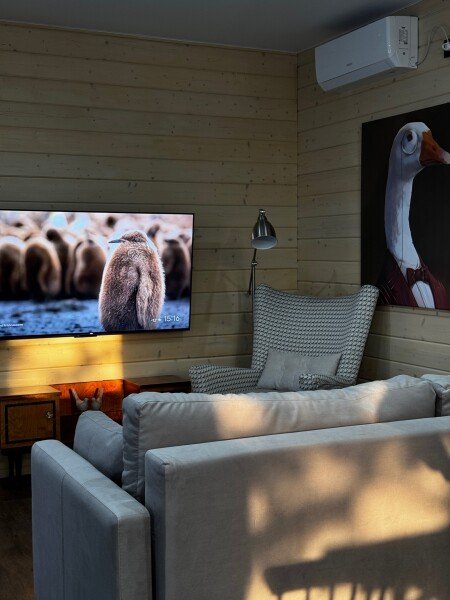 Просторная гостиная станет отличным местом как для встреч с друзьями, так и для уютного семейного отдыха.