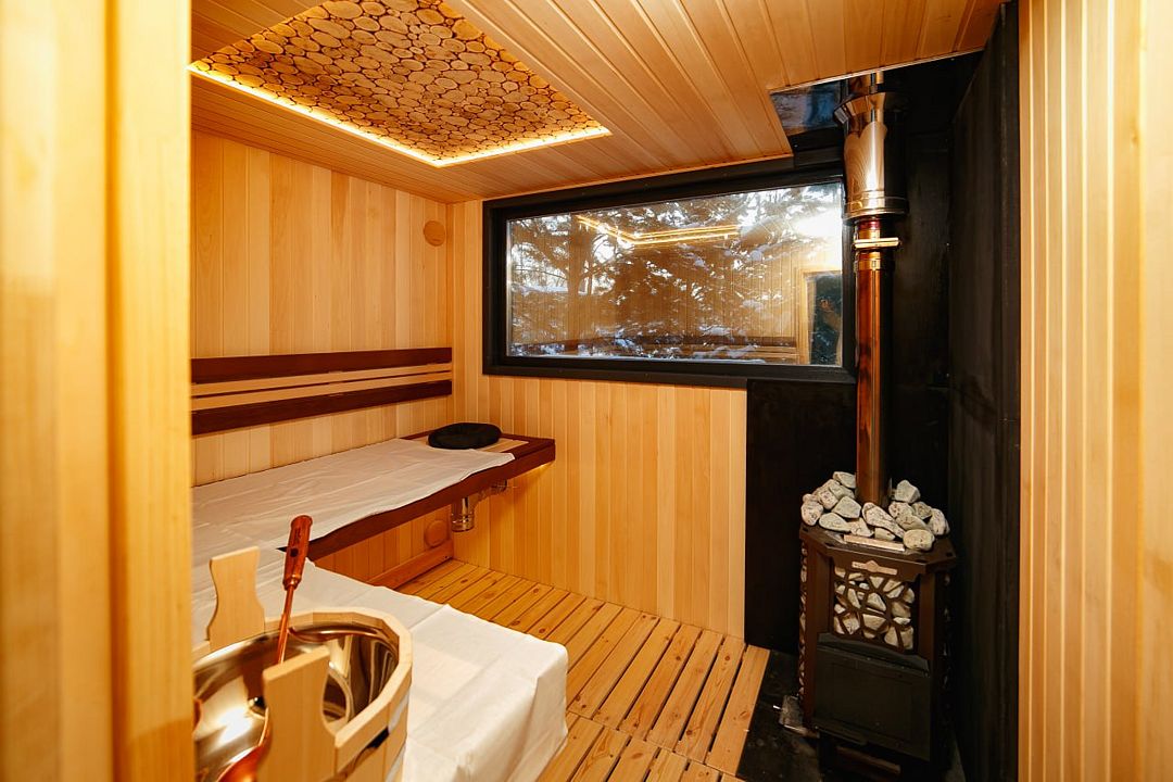 Сауна расположена у дома «Holiday Home». В стоимость проживания входит посещение сауны (3 часа).