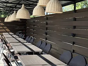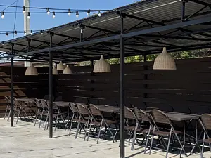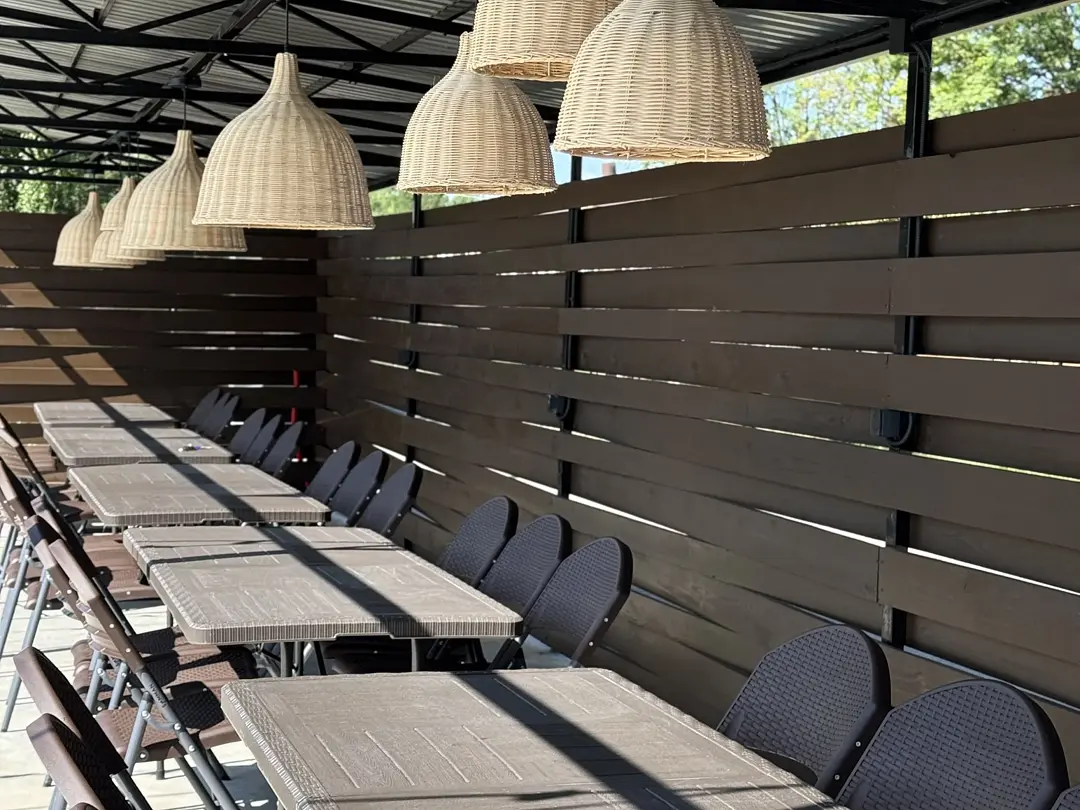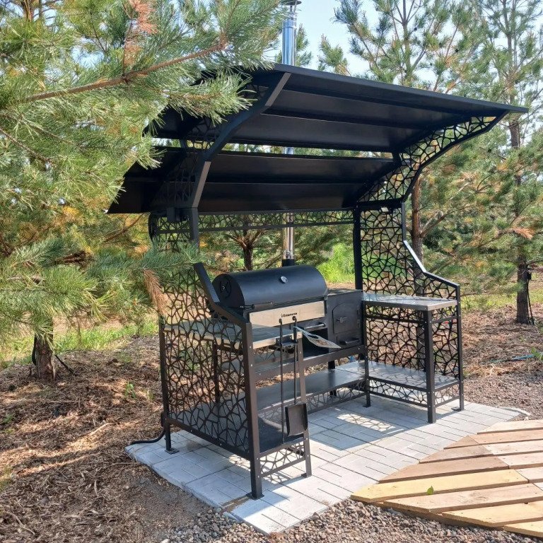 Летняя беседка вмещает до 36 человек и оборудована всем необходимым для комфортного отдыха: