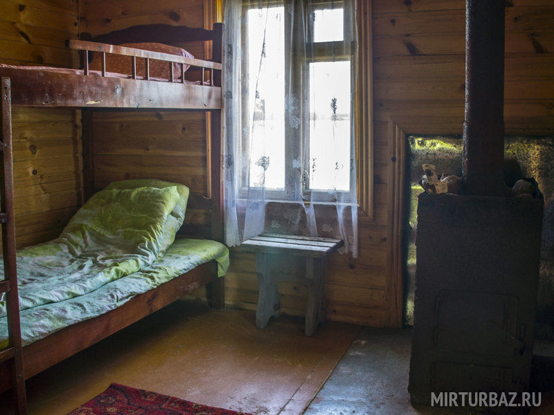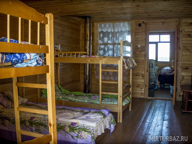 Небольшим компаниям будет удобно разместиться в домике. Сдаются две комнаты, в каждой из которых по несколько спальных мест (двухъярусные кровати).