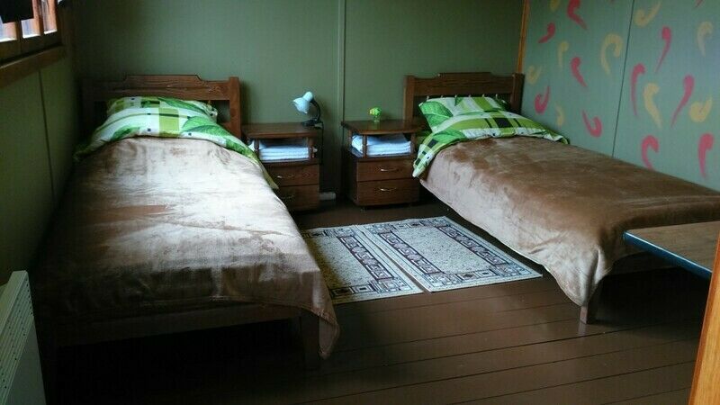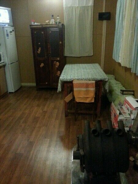 Две комнаты. В каждой двухъярусная кровать, стол, два стула. Общая кухня, душ, два туалета. На кухне: большой холодильник, газовая плита, микроволновая печь, электрический чайник, спутниковое телевидение.