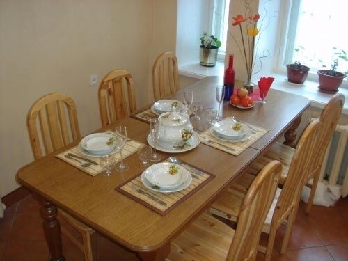 Веранда, холл, уютная 4-местная спальня + 2 дивана (мягкая мебель, телевизор, спутниковые каналы, DVD, караоке, магнитофон), две 2-местные спальни, одна 4-местная (две 2-ярусные кровати). Кухня, туалет, душ в доме. Пользование мангалом, шампурами и 1 вязанка дров входят в стоимость!!!