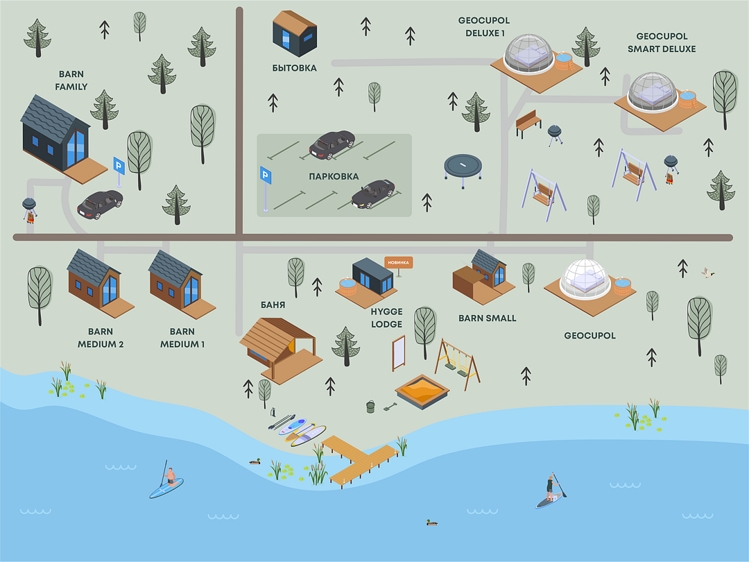 - развлечения на свежем воздухе: бадминтон, SUP-бординг и многое другое;