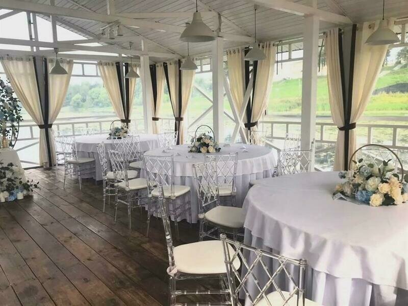 Особой атмосферой торжества наполнит ваш праздник современный банкетный зал, расположенный на воде. Он доступен к аренде лишь в теплое время года.