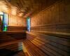 На первом этаже коттеджа расположена соляная сауна и комната отдыха.