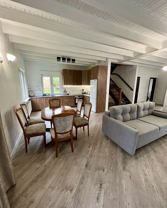 Данный дом отличается просторностью, светлостью и уютной атмосферой. Все здесь новое и обустроено для максимально комфортного проживания компанией до 8-10 человек.