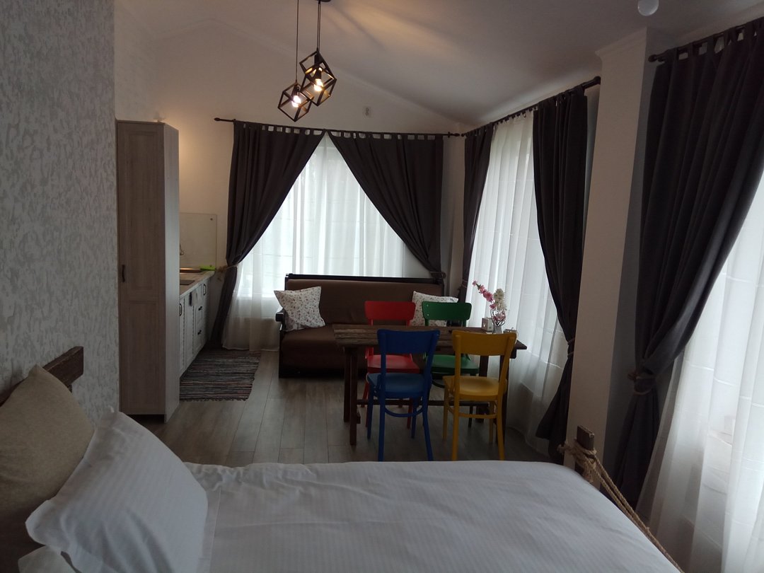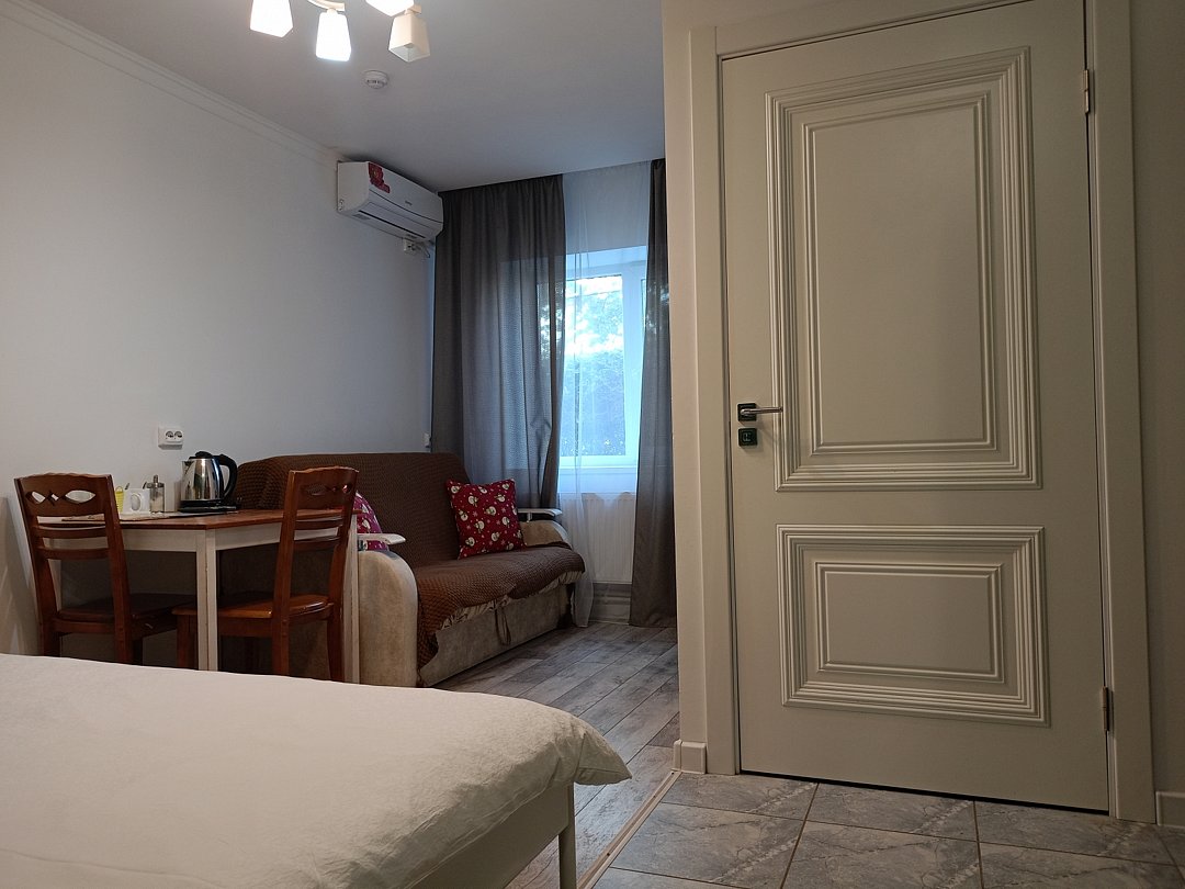 Бутик-отель в тихом районе в 800 м от центра, рядом с рекой Кубань и достопримечательностью «Плотина». Интерьер с отреставрированной мебелью и дизайнерскими акцентами, просторные номера с большими окнами, белым постельным бельем и современным оборудованием. Территория с садом, зоной для барбекю, бесплатным Wi-Fi, парковкой и вкусными блюдами. Рядом — магазин, автобусная остановка и природные достопримечательности.