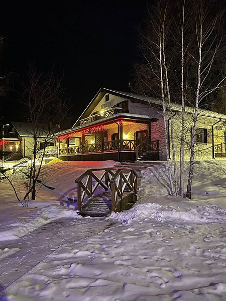 Путешествие с семьейИ летом хотелось бы здесь побыватьОчень давно собирались посетить данное место отдыха, т.к. находимся за 150 км. На Рождество Христово решили посетить рядом находящийся Мужской Монастырь в Тарасково, а заодно и остановиться на пару праздничных дней в Загорье. Заочро были знакомы с данным местом отдыха, т.к. на сто раз прочли все отзывы и просмотрпли фото ))). Для нашей семьи главным приоритетом в выборп отдыха должна быть ЧИСТОТА, поэтому очень смпло ехали в Загорье. Нам понравилось ВСЁ, Абсоьютно всё! Начиная от общения при бронировании, когда нам очень оперативно, подртбно, и много предоставили всякую информацию, до момента выезда. Чистота везде действительно, наличие посудомойки отстраняет всю брезгливость, т.к. посуда идеально чимтая, в .ч. кастрюли, сковороды и т.п. Шале очень комфортное, нам 6 чел было очень комфортно с детьми и подростками, особенно наличие двух сан.узлов! Вода горячая, напор хороший. На территории очень милый, с душой сделан ледовый городок. Персонал очень быстро реагировал на все наши "капризы". Мы ещё брали питание - оно такое вкусное, разнообразное, домашнее, даже дети ели всё с удовольствием, особенно булочки и голубцы, а какие каши мммммм....... Брали баньку, находится рядом, тоже всё чистенько, хорошо. Рядом посетили экскурссию с лошадьми. Только подвела чуть погода - особо было не погулять, Рождественские морозы минус 35 (((, но в домике было тепло!!!, особенно на втором этаже, а на первом полы с подогревом. В общем мы остались отдыхом оооочень довольны, Спасибо большое!!! Думаем на лето арендовать данное шале суток на 10!