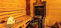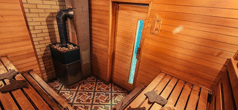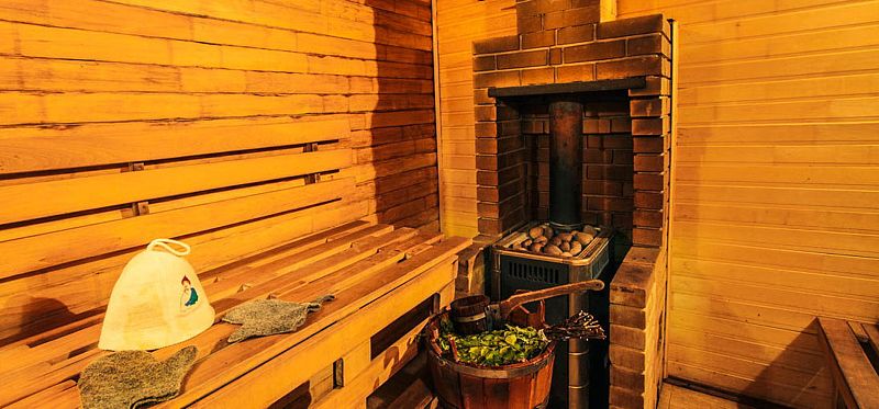 Баня оборудована просторной парилкой и финской печкой с камнями «Жадеит». Главное достоинство камней Жадеит заключается в целебных качествах. Пар, который получается в результате реакции валуна с водой, обеззараживает и отлично влияет на все системы человека и органы дыхания. Он приводит в норму биологический состав красных телец и давление, полезен при всех болезнях позвоночника. При использовании этих камней удовольствие от банных процедур совмещается с оздоровлением всего организма.