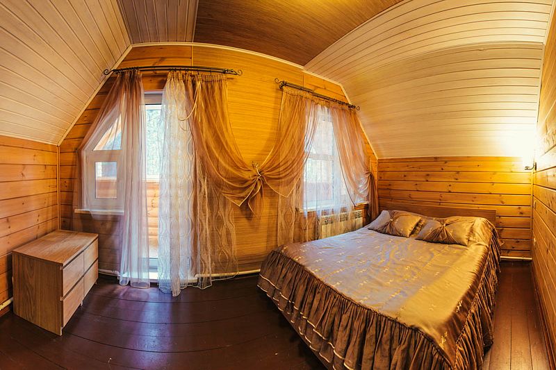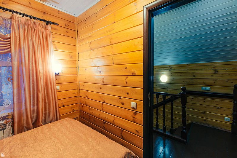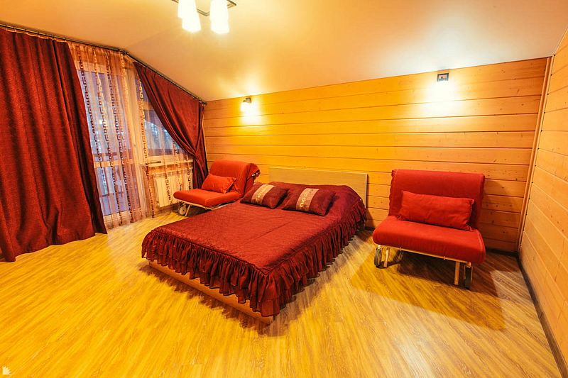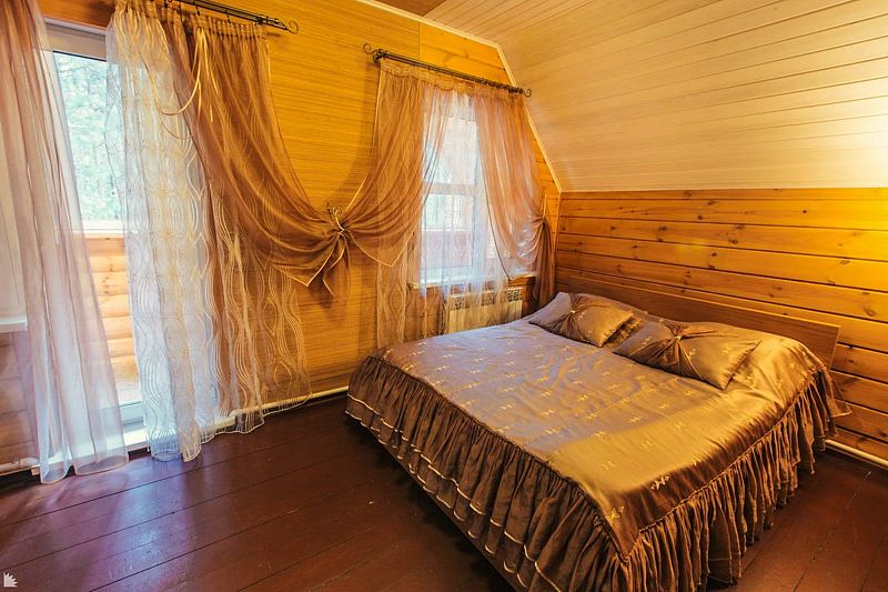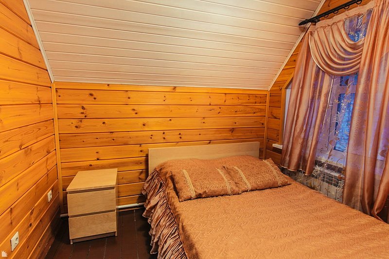 На втором этаже находятся 2 отдельные комнаты: одна с большой двуспальной кроватью, в другой — большая двуспальная кровать, а также раскладной двуспальный диван. Выход на балкон из одной из спален — с прекрасным видом на озеро Таватуй.