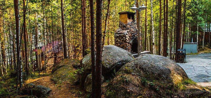 По всей территории распределены мангальные зоны где вы всегда можете приготовить вкусную пищу на углях.