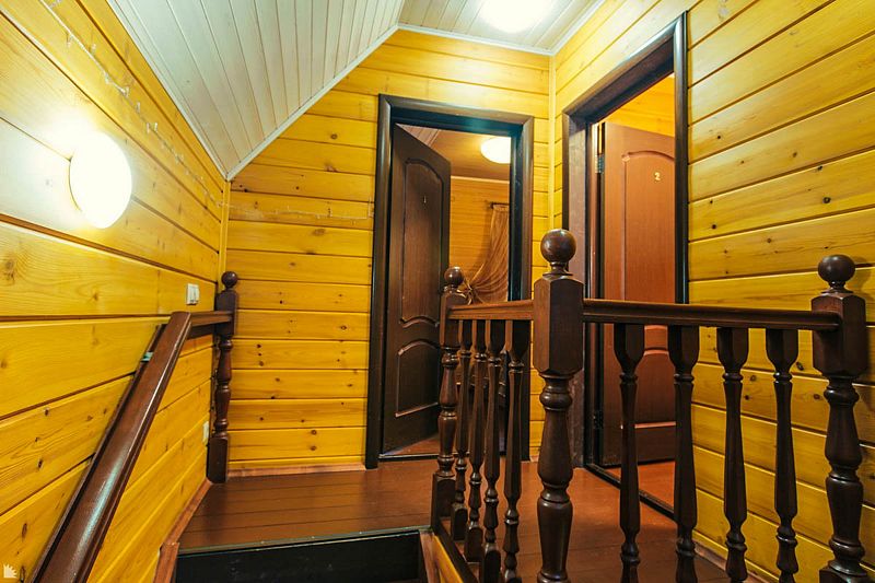 На втором этаже находятся 5 отдельных комнат, среди которых VIP-спальня с собственным санузлом и балконом, откуда открывается роскошный вид на лес и озеро. Также есть два санузла, один из которых оборудован душевой кабиной, а также отдельная комната отдыха с бильярдом и настольным теннисом.
