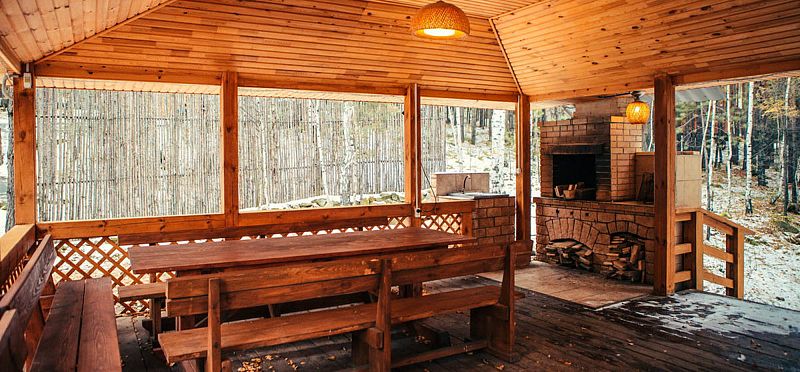 Читать полностьюУютная деревянная беседка с мангалом позволит вам отдохнуть на природе с максимальным комфортом. В беседке есть свет и вода, а также собственный камин, который создаст неповторимую атмосферу домашнего комфорта и уюта. Неподалеку от беседки расположена красивая кованая качель, спортивные и детские площадки. Отдыхая в беседке, вы можете попариться в настоящей русской бане (в стоимость аренды не входит).