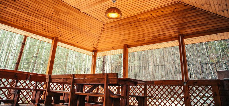 Беседка расположена в сосновом бору, в непосредственной близости от живописного берега озера Таватуй. Здесь можно организовать банкет, пожарить мясо на гриле и провести приятный вечер у камина в компании близких друзей. Чистый лесной воздух и красота природы среди высоких сосен на берегу кристально чистого озера создадут атмосферу уюта и покоя. В распоряжении гостей — 2 стола 250*90 см и 1 стол 150*95 см.