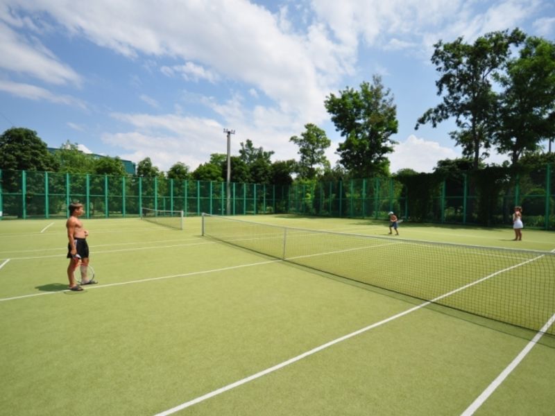Семейный отдыхДостоинстваТерритория очень зеленая. Приглашали на концерты различных артистов. Анимация класс – всегда было чем заняться детям. Уборка качественная. На пляже есть всё необходимое. Для любителей спорта спортплощадки.