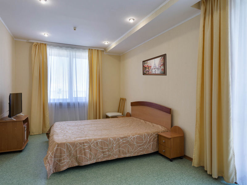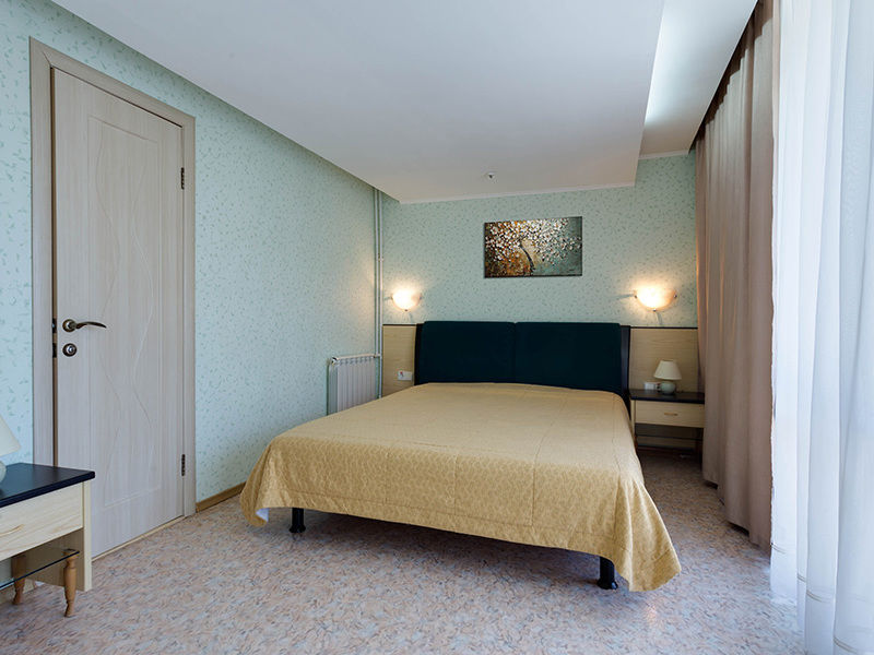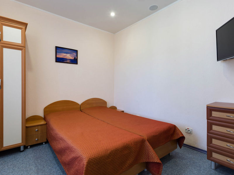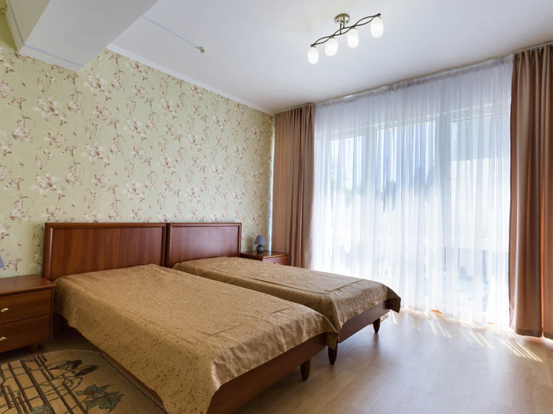 Первая спальня: в стандартной комплектации номера одна двухспальная кровать с ортопедическим матрасом, возможно размещение с двумя раздельными кроватями с ортопедическими матрасами, постельное белье, набор полотенец, шкаф с вешалками для одежды, комод, зеркало, прикроватные тумбочки, настольные лампы, плазменный телевизор.