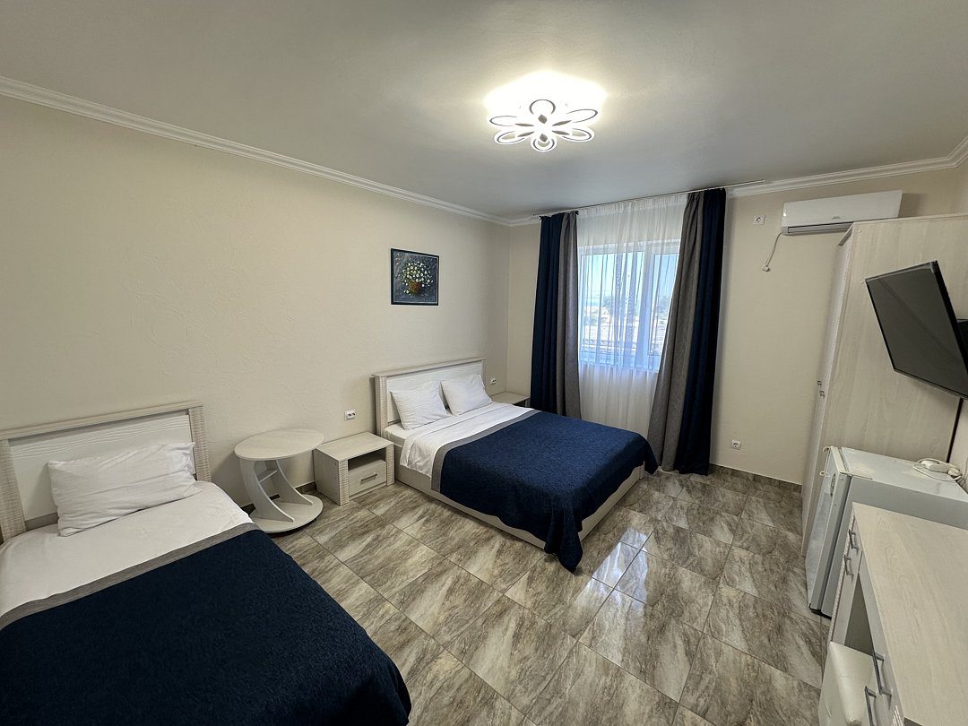 Комнат: 1 Санузел: в номере, с душем Мебель: кровати, шкаф для одежды, тумбочки, столик, кровати с ортопедическим матрасом. Телевизор ХолодильникВ номере