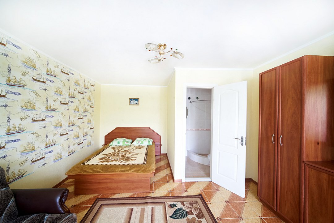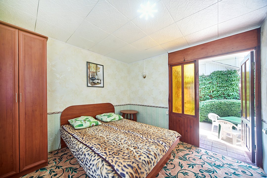 Отдельно стоящий домик эконом класса утопающий в зелени рассчитанный на проживание до 2х человекВ номере