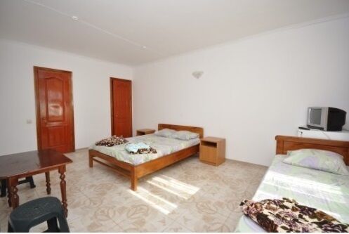 З-х местным номером с видом на море будут очень довольны все гости базы отдыха, так как он обновлен только в прошлом году и уютно оформлен. Здесь есть все необходимое: холодильник, телевизор и санузел.