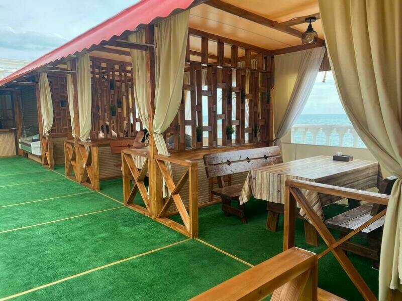 Изюминка отеля – большая видовая терраса со своим выходом на обустроенный пляж. Здесь отдыхающим созданы идеальные условия для восстановления здоровья, укрепления иммунитета, сохранения красоты и молодости. Терраса – отличное место для проведения свадеб, фотосессий, всевозможных мастер-классов, выступлений танцевальных коллективов, организации конкурсов, корпоративов.