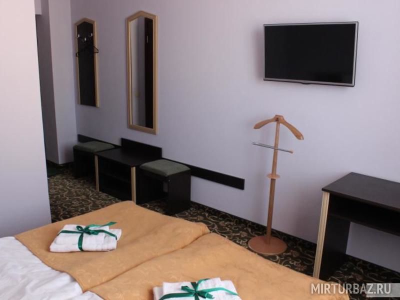 Стандартный номер с двумя односпальными кроватями или одной двууспальной, оформлен в разных цветовых категориях нейтральных тонов. Вместимость 2 взрослых + 1 взр./1 реб. Общее количество номеров – 29, расположены на 1,2,3 этажах, на 2 и 3 этаже с балконом. Вид с балкона на море и город.