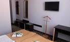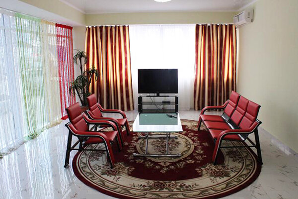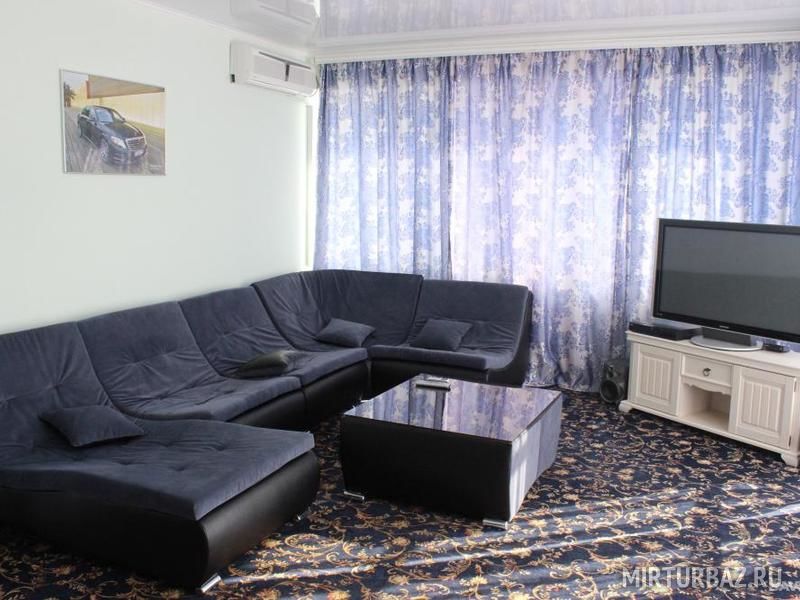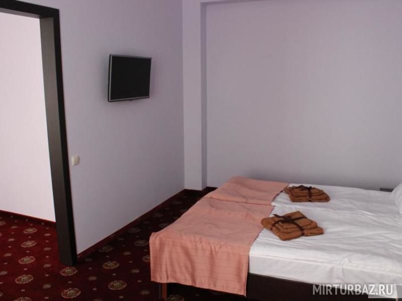 «Полулюкс четырехместный двухкомнатный» - комфортный двухкомнатный номер с 4-раздельными кроватями или двуспальная кровать + односпальные. Вместимость 4 человека + дополнительное место. Общее количество номеров – 12, расположены на 2 и 3 этажах с собственным балконом. Все номера с видом на море или на панораму города.