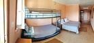 Четырехместный номер с двуспальной кроватью и двухэтажной кроватью, с дополнительным пятым спальным местом. Номер оснащен туалетным журнальным столиком, небольшой гардеробной, телевизором , кондиционером. В номере туалетная комната с душем. Предоставляются туалетные принадлежности: полотенца, мыло, шампунь, туалетная бумага. Санитарная уборка номера производится по запросу.