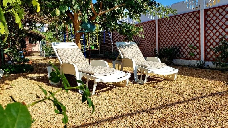 В поселке Николаевка на западном побережье Крыма расположен семейный мини-пансионат под названием «Три Флага». Он находится в спокойном районе поселка и находится в непосредственной близости от береговой линии – пешком до песчано-галечного пляжа всего 300 метров (6-8 минут прогулки). К тому же, ближайший пляж с камнями и возможностью рыбалки находится еще ближе, всего в 5 минутах ходьбы. А если Вы предпочитаете центральный пляж со шезлонгами и шатрами – можно дойти до него за 15 минут пешком. А гостям предлагаются услуги проживания и питания: можно выбрать полный пансион или полупансион, и наслаждаться крымским отдыхом с комфортом.
