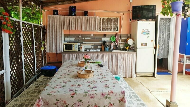 К вашим услугам полностью оборудована летняя кухня — можно делать заказ блюд из кафе или приготовить еду самостоятельно.