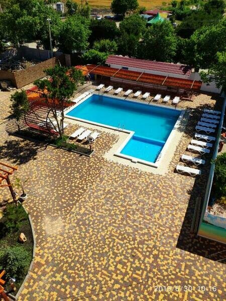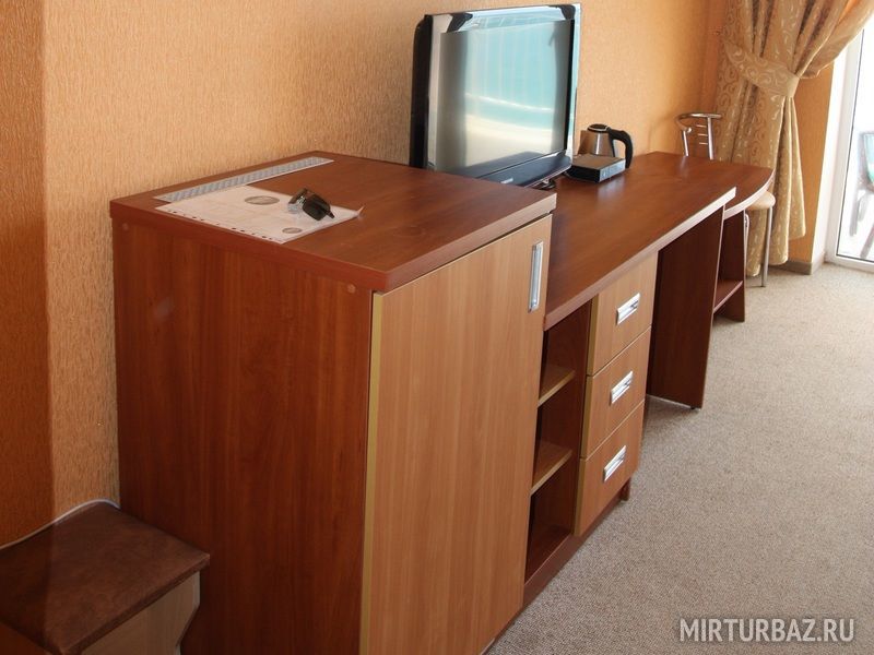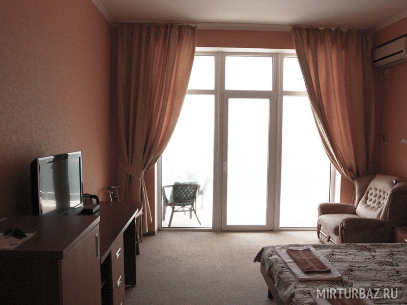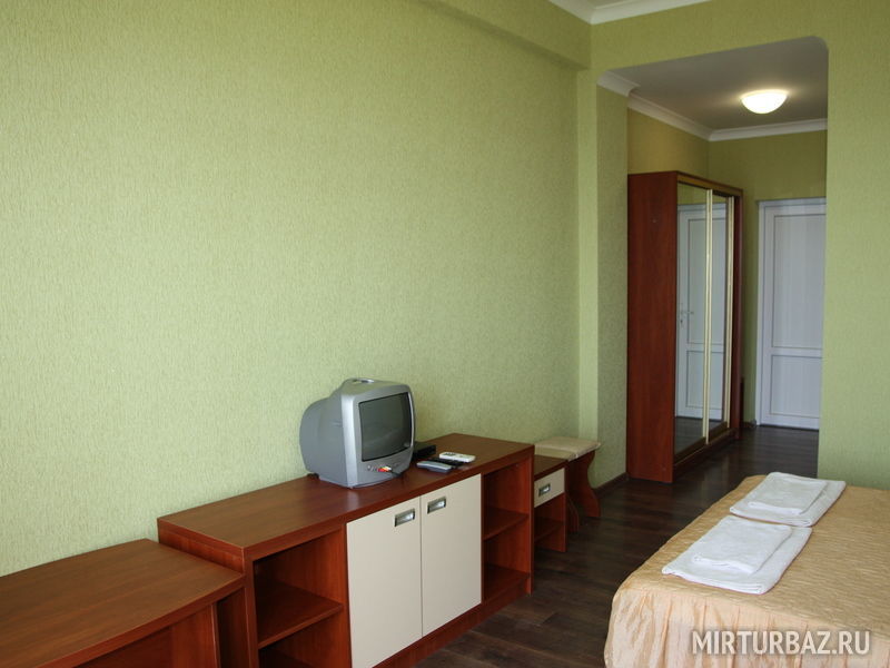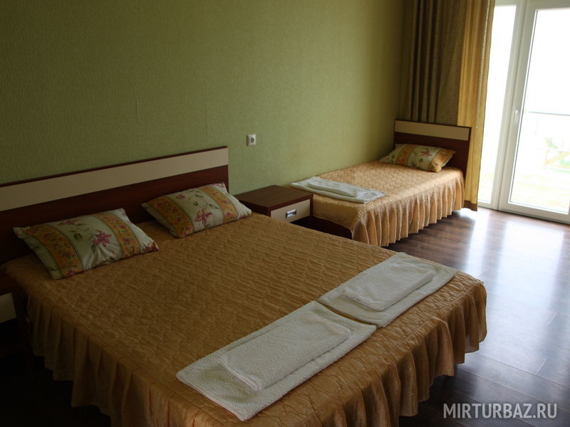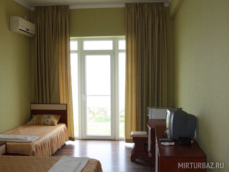 Состоит и двух корпусов: оба недавно построенные: дин прямо точь в точь типовой проект американских мотелей (с номерами поменьше), другой - уже солидное сдание с просторными номерами, огромными балконами-вид из всех номеров на море, и высокими потолками.