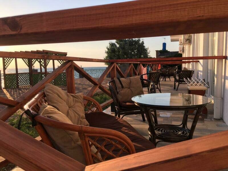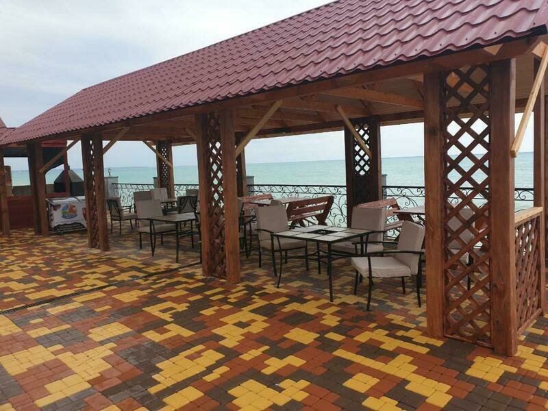 Возле зданий, перед спуском на пляж есть кафе. Арендует его семья поваров (долгое время работали в Италии) -они сами и готовят-очень-очень вкусно и очень приемлемо по ценам (полноценно пообедать до пуза на троих-не выйдет больше тысячи рублей).
