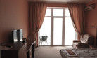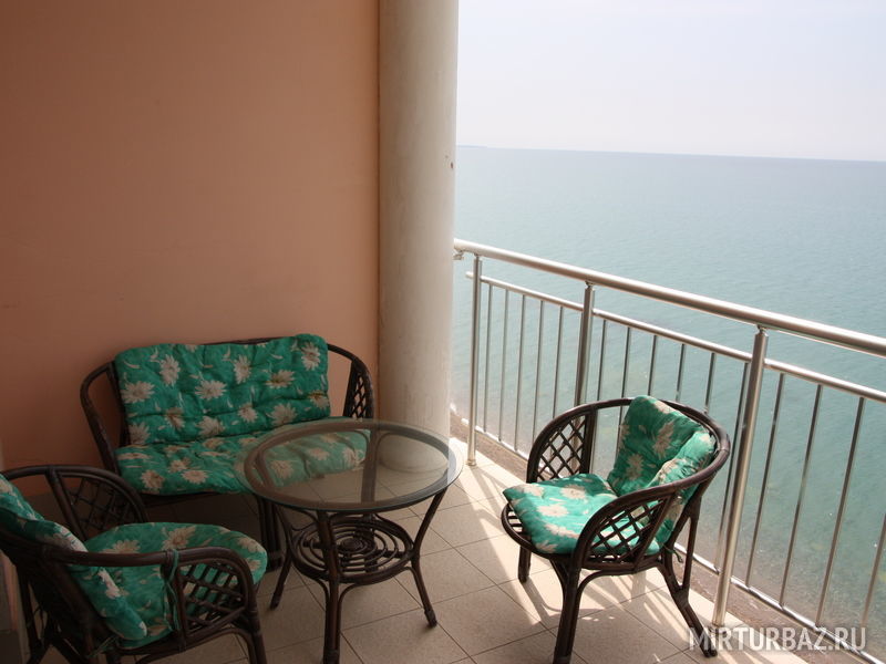 Мы отдыхали в большом здании. Номера просторные, есть кондиционер, холодильник, телевизор со айпи-тв, бесплатный вай-фай, посуда, и неплохой набор мебели. Балкон просто потрясающий - наверное 10 метров с плетеным диванчиком, двумя креслами и столиком - можно очень уютно проводить время на нем.