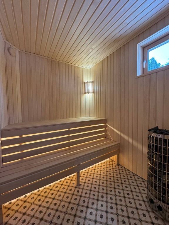 Дом включает в себя единое свободное пространство: гостиная, кухонная зона, две спальни, санузел и сауна. Кухня полностью оборудована для приготовления пищи, большой обеденный стол.